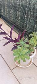 composizione di Sedum palmeri (o borracina di palmeri) e Tradescantia pallida (o Erba della miseria)