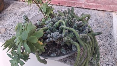 composizione di più specie di piante grasse in vaso di vetro da 20cm, altezza circa 18cm.