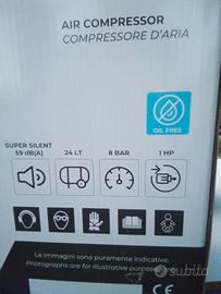 Compressore FIAC supersilent 24/1, nuovo, preso tempo fa e mai usato, ancora nella scatola originale. Serbatoio 24 litri, leggero e facile da trasportare con doppia maniglia. Motore 1 hp, supersilenzioso, funziona senza olio, pressione max.8 bar, aspirazione 130 litri/minuto, alimentazione 220 volt. In blocco sono compresi 2 trapano/avvitatore 12 Volt usati, uno Makita e l'altro Hitachi, compresi di una batteria non più performante e caricatore non originale, come da foto