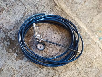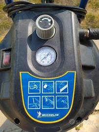 Vendo compressore acquistato nuovo e usato pochissime volte, marca Michelin da 50 litri, verticale, dotato di ruote per un facile trasporto. Manometro e valvola di regolazione pressione (attualmente impostato a 8 bar ma può arrivare fino a 10). Compreso nel prezzo lascio una canna, pistola aria, pistola pressione pneumatici, un'altra canna con avvolgitore e qualche attrezzo.