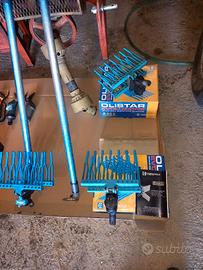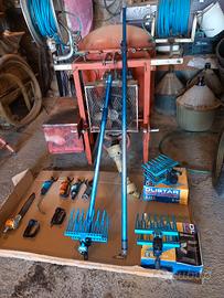 Vendo, in blocco, compressore portato da trattore con attacco a 3 punti con 6 uscite della Campagnola; giunto cardano azionato dal trattore; 3 abbacchiatori della Campagnola, di cui 2 "Olivestar Evoluzione ed una Tuono; 4 forbici pneumatiche; due aste telescopiche, una da 1,80 da riparare e una da oltre 3 m; sega pneumatica con carter adattato come in foto perfettamente funzionante; manopola da sostituire all'asta quando si usa la sega. Vendo per cessata attività anche pezzi singoli. Ritiro a domicilio. Prezzo leggermente trattabile