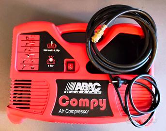 Vendo causa inutilizzo compressore portatile a valigetta, marca ABAC, modello Compy Red Line, 1100w, 1,5hp, 97db, 8bar max, lunghezza del tubo dell'aria di circa 3mt. Utilizzato qualche volta all'anno per gonfiare la palla da palestra e saltuariamente i pneumatici dell'auto. L ho sempre custodito in casa e non in garage, è praticamente nuovo e non presenta graffi evidenti o segni di usura. Sono compresi gli accessori indicati in foto.