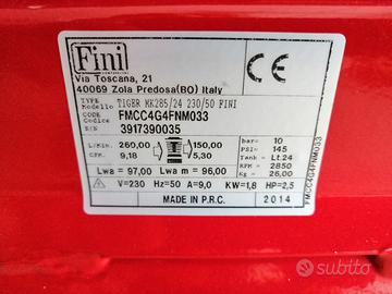 Vendo come da titolo, compressore aria FINI 24 lt 10 bar , ben tenuto, mod.MK 285, con aggiunta di 2 essiccatori e 2 attacchi rapidi ( solo questi componenti più di 50,00 euro.Tutte le caratteristiche visionabili sulla targhetta in foto allegata. Qualsiasi prova , vendo a € 140 , non spedisco.