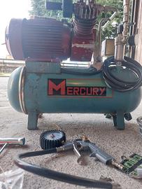 Compressore d'aria Vintage portatile a pistone, prodotto da Mercury Fini, degli anni 80, noto per le sue applicazioni versatili.