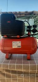 Vendo compressore d'aria compatto Black & Decker, modello ultra-silenzioso e Oilless (senza olio). Grazie alla tecnologia a secco, non richiede manutenzione e non emette vapori d'olio, rendendolo perfetto per l'uso dentro casa, in ufficio o in laboratorio. È lo strumento ideale per chi ha bisogno di aria compressa senza il rumore assordante dei classici compressori da officina. Specifiche Tecniche (da etichetta): Capacità serbatoio: 6 Litri Pressione massima: 7 Bar (102 psi) Potenza: 0.28 kW Portata aria: 50 l/min Peso: Solo 8 kg (molto facile da trasportare) Alimentazione: 230V (normale presa di casa) Condizioni e Dotazione: Dotato di doppio manometro (per controllare la pressione nel serbatoio e quella in uscita). Regolatore di pressione integrato. Piedini in gomma antivibrazione per ridurre ulteriormente il rumore. Perfettamente funzionante e pulito.