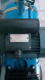 Vendo compressore da 100 litri professionale (utilizzato pochissimo, praticamente nuovo), costruito in tutte le sue componenti in Italia. È equipaggiato con un motore elettrico composto da avvolgimenti totalmente in rame e costruito dalla E.L.D. SpA di Romano D’Ezzelino (VI) attualmente facente parte della Orange1 Holding. La portata massima è di 12 atmosfere di cui 8 continue grazie al corpo con doppio cilindro in ghisa in cui il primo cilindro più grande è per la portata di 8 atmosfere ed il secondo più piccolo è per raggiungere le 12 atmosfere di punta grazie ad un efficiente motore monofase a basso consumo da 1,5 KW - 2 HP.