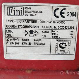 Compressore a cinghia FINI 100lt - Motore 2hp 1,5kw 380V convertibile a 220V - 9 bar - 131 psi - 148 lt/min Possibile spedizione in contrassegno