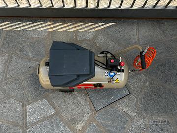 Vendo compressore d’aria fini capacità 50 litri potenza 3 cv bicilindrico. Compreso di tubo e pistola. Molto potente Come nuovo Usato solo per soffiare interno macchina e gomme No spedizione