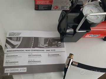 Compressore portatile per gonfiabili vari, ruote bici, moto, auto, gommoni, palloni, ecc, collegabile a presa accendisigari dell' auto. Corredato da scatola originale e scontrino fiscale.