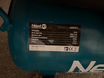 Vendo compressore d'aria Newton da 24 litri, perfettamente funzionante e tenuto con cura. È lo strumento ideale per lavori domestici, hobbistica, gonfiaggio pneumatici, verniciatura a spruzzo e pulizia con aria compressa.