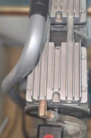 Silenziosità: Emissione sonora estremamente bassa, circa 59 dB, che permette l'uso in ambienti chiusi senza fastidi eccessivi. Manutenzione: Motore a secco (Oil Free), quindi non richiede il controllo o il cambio dell'olio. Pressione: Regolabile fino a un massimo di 8 bar. Usi consigliati: Gonfiaggio, soffiaggio, chiodatura pneumatica e piccoli lavori di verniciatura.