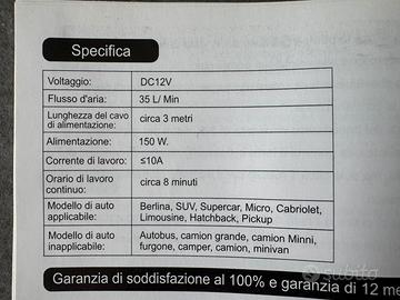 Compressore portatile a 12V con presa accendisigari