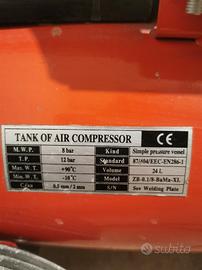 24L, 210lt/min. Filtro dell'aria da sostituire, per il resto perfettamente funzionante. Sprovvisto di tubi e pistola d'aria.