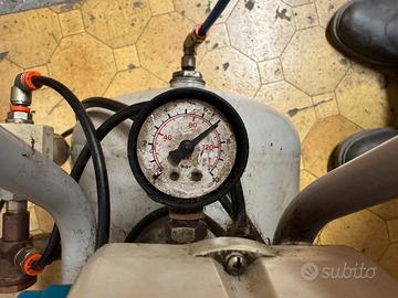 Vendesi compressore silenziato perfettamente funzionante. Puo’ essere impiegato per piccoli lavori di bricolage, aerografia. Il precedente proprietario lo utilizzava nel suo laboratorio di pellicceria. Durante il funzionamento dei due compressori emette meno di 55dB di rumore pertanto è utilizzabile anche in casa. Massima serietà. No perditempo. Da sostituire manometro causa mancanza vetrino (funziona lo stesso anche cosi). Spedizione non disponibile