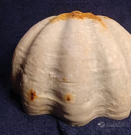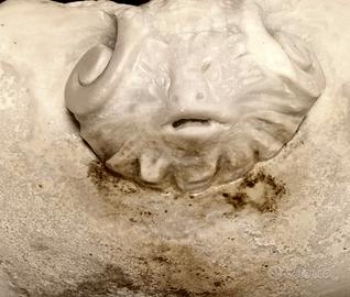 conchiglia -acquasantiera in marmo bianco con muso di leone
