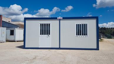 Container box prefabbricato nuovo uso ufficio personalizzato con infissi bianchi e pannelli grigi. Dimensioni 6,00 x 2,40 metri.