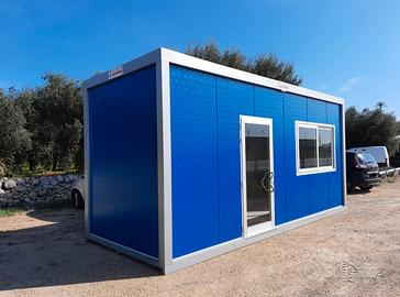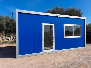 Box prefabbricato container uso ufficio personalizzato con infissi in alluminio silver e pannelli colorati.