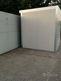 container con pannelli coibentati spessore cm.4, copertura anche coibentati con pannelli grecati spessore cm.6 , molto utile come box da giardino, ricovero attrezzi,bagno mobile uso ufficio, uso diverso. Misure mt. 2.05x 2.10 altezza mt. 2.70 porta cm.66x205 finestra cm.45x37 Per qualsiasi altra richiesta non esitare a contattarmi per tel.3515498293 anche via mail.