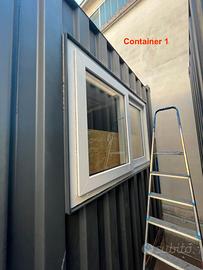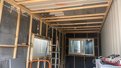 originariamente previsto come cucina/zona pranzo open space. Una parete laterale doveva essere completamente rimossa e ampliata con una veranda. A parte la parete laterale in questione, il container è completamente isolato con pannelli XPS e schiuma. Inoltre, sono state inserite 2 finestre in un robusto telaio d'acciaio e sigillate professionalmente.