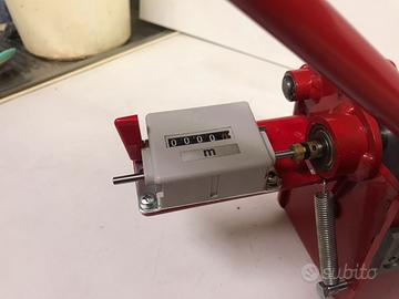 Conta metri per cavi, fili elettrici ed affini. Costruito in lamiera di acciaio. Verniciato a forno. Misura cavi fino a max Ø20mm Completo di taglierina. Nuovo mai utilizzato causa errato acquisto, pagato euro 650