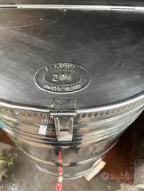 Contenitore aggraffato fondo piatto e finitura liscia da 200 litri, in acciaio inox con treppiede incluso Misure Altezza 85 cm Diametro 57 cm