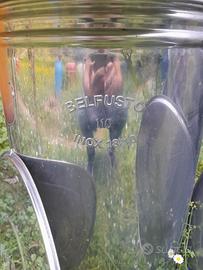 Vendo contenitore acciaio inox litri 110 adatto alla conservazione di olio o vino, corredato di coperchio, galleggiante e rubinetto tutti in acciaio.