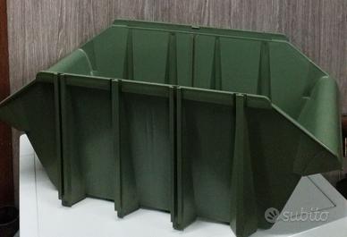 Contenitore tipo bocca di lupo doppio ingresso. Disponibilità 8 pezzi Misure esterne: Larghezza. 34 cm Altezza 25 cm Profondità 65 cm