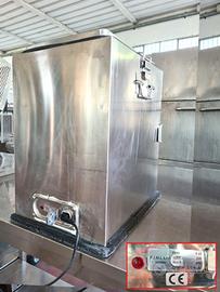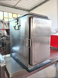 contenitore isotermico attivo usato, si tratta di un box in acciaio inox marca F.I.M.I. mod. F22 di cui non conosciamo l'anno, utile per il trasporto e mantenimento della temperatura delle vivande con riscaldatore attivo funzionante a 220v, ha un'anta frontale e un tappo superiore con guarnizioni in gomma per mantenerne la coibentazione.