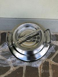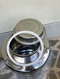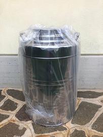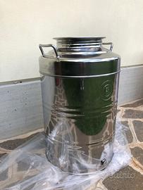 Due maniglie in acciaio inox saldate, tappo a vite con guarnizione di tenuta.