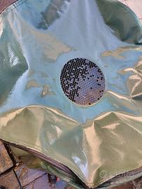 Contenitore per acqua piovana da 250L, in PVC colore verde. Pieghevole per un facile trasporto, dotato di rubinetto in basso con innesto standard per collegare una canna. Utilizzabile per riempire innaffiatoi o secchi. Il coperchio è dotato di cerniera e di maschera per evitare la caduta di foglie e sporcizia. Ritiro in loco, non spedisco