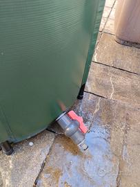Contenitore per acqua piovana da 250L, in PVC colore verde. Pieghevole per un facile trasporto, dotato di rubinetto in basso con innesto standard per collegare una canna. Utilizzabile per riempire innaffiatoi o secchi. Il coperchio è dotato di cerniera e di maschera per evitare la caduta di foglie e sporcizia. Ritiro in loco, non spedisco