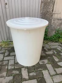 Contenitore industriale in plastica realizzato in polietilene ad alta densità (HDPE) per alimenti. Marca SSS, capacità 200 Lt, Mis. Ø 615 x 800 H mm, 100% riciclabile. Sezione conica, sovrapponibile, senza maniglie e completo di coperchio a pressione Colore neutro. In ottime condizioni, vendo per inutilizzo. Solo ritiro a mano