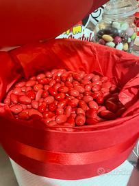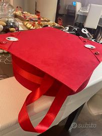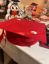 Bellissimo contenitore rosso a parte forma di “Tocco” da laurea , utilizzabile per confettata o come porta bomboniere.