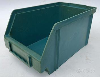30 contenitori a bocca di lupo sovrapponibili serie Alfa 3 Continental, altezza 12,5-lunghezza base 20, lunghezza nel punto più lungo 23, larghezza 14,5 cm. Possibile anche acquistare singolarmente, in tal caso 1,50 euro al pezzo.