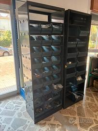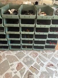Contenitori a bocca di lupo impilabili e componibili in materiale plastico. Porta minuteria e materiale da giardinaggio, idraulica o per officina. Varie misure disponibili: - 35 x 20x 16,5 piccola - circa 180 disponibili - 50 x 35 x 20 media - cica 230 disponibili - 51,5 x 32 x 30 grande - circa 30 disponibili N. 2 armadi con cassetti scorrevoli: - Armadio con 30 contenitori scorrevoli di misura 32 x 20 x 15 - Armadio con 18 contenitori scorrevoli di misura 45 x 30 x 19 Prezzo da concordare a seconda del numero di contenitori richiesti. Cell. 3273063255