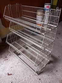 Vendo contenitori a cesta in metallo impilabili, multiuso 8 pezzi totali 4 pezzi 95 x 60 altezza totale impilati 140 cm, con rotelle 4 pezzi 45x 42 altezzatotale 120 cm vendo in blocco