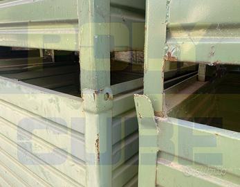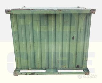 Contenitori industriali in lamiera grecata USATI versione grande. Sono agevolmente sovrapponibili o accatastabili ad incastro, hanno le slitte sul lato lungo ed i fori di aggancio per sollevamento. Il lotto si presenta in BUONE condizioni di mantenimento, su taluni possono essere presenti limitate piegature, su altri limitati segni di ruggine superficiale e su tutti c’è la punzonatura del primo committente. Polycube Srl fornisce contenitori utilizzabili e pronti all’uso, il nostro obiettivo è quello di dare un quadro documentale più trasparente possibile. I contenitori non sono ripuliti e non vengono rimosse eventuali etichette.