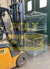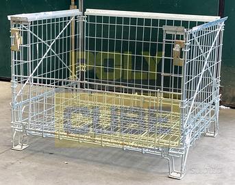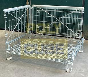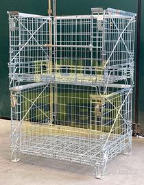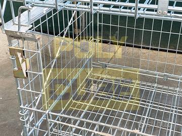 MISURE ESTERNE: mm 1230 X 1020 h900 - MISURE DA CHIUSE: mm 1230 X 1020 h325 - MISURE INTERNE: mm 1160 X 950 h 740 - TARA: Kg 58 - Lotto in buone condizioni di mantenimento con insignificanti segni di ruggine su alcuni pezzi e piegature dovute al normale utilizzo. Possibilità di spedizione con corriere, il prezzo su richiesta. Proposta salvo il venduto.