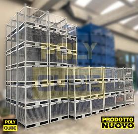 Contenitori metallici industriali con pianale in lamiera grecata, pareti in rete, impilabili ad incastro e slitte sul lato lungo. PRODOTTO NUOVO. Misure nominali 100x800h78 interne 100x800h65 portata kg1000. Possibilità di spedizione anche per piccoli quantitativi. Proposta da Polycube srl, salvo il venduto. Preventivo su richiesta. disponibili in pronta consegna altri modelli visionabili sul ns. sito polycube.it