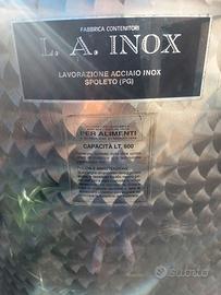 Numero due contenitori acciaio inox capacità lt, 600 e litri 400 con rubinetto travaso come nuovi euro 300 Per contatti chiama il 393 9507251