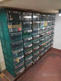 Più di 100 cassetti trasparenti,tutti interi, eventualmente con telaio per riporli