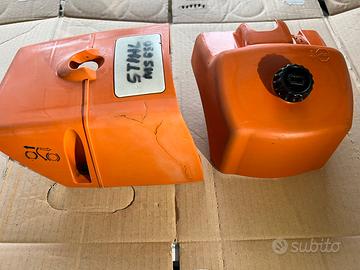 Vendo coperchio di plastica per motosega Stihl MS 650. Disponibile coperchio cilindro e coperchio carburatore e filtro. Prezzo per entrambi Buone condizioni.