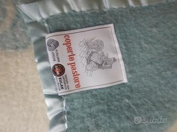 Coperta di pura lana vergine, Marca Pastore... Realizzata con trattamento Bayern anti tarme. Colore celeste e panna , dubleface. Come nuova.