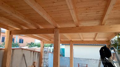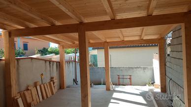 legname già trattato con impregnante e antimuffa completo di tutta la ferramenta in acciaio inox ,gronde scossaline e tutto coperto e visibile a Capoterra in capannone chiuso.
