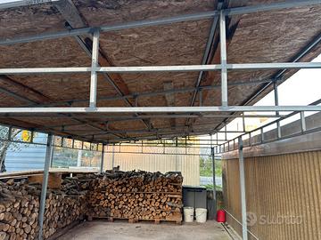 Vendo copertura per auto come da foto, realizzata con struttura in ferro zincato, tetto in legno e onduline di copertura. Misure: •Lunghezza: 6 metri •Larghezza: 3,5 metri •Altezza: 1,80 metri Struttura solida e resistente, adatta come posto auto coperto, rimessa o copertura per attrezzi e legna. Venduta nello stato in cui si trova. Smontaggio e trasporto non inclusi. Per maggiori informazioni contattami in privato.