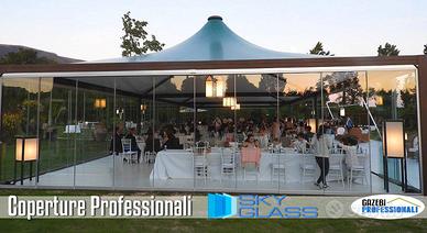 Possibile inserire dei teli laterali fissi o scorrevoli con o senza finestre.