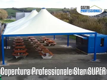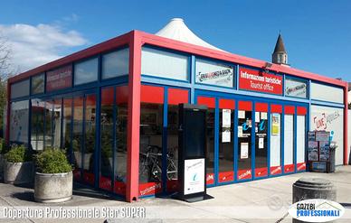 Copertura gazebo pesante in carpenteria metallica professionale e certificato per uso pubblico.