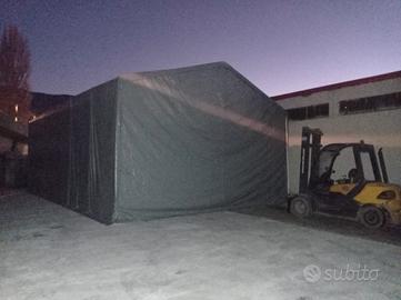 Tendostruttura industriale completa di struttura con tubolari zincati resistente, controventata con telaio perimetrale alla base , incluse piastre forate per fissaggio, telonato grigio in PVC800 certificato.