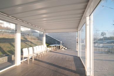 strutture che si integrano in qualsiasi ambiente architettonico, sia di abitazioni private sia di spazi tipici del contract. Funzionalità, comfort, bellezza e resistenza: il design essenziale e l'ampia proposta di pergole in alluminio con telo in PVC sono in grado di risolvere ogni esigenza progettuale