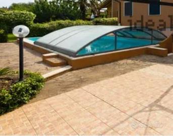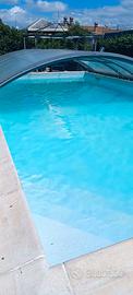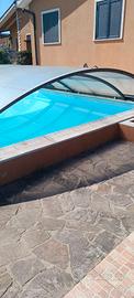 Telaio in alluminio, volte in policarbonato resistente ai raggi UV, due moduli scorrevoli telescopicamente e smontabili anche singolarmente, in perfette condizioni, per piscina 9,20x5,05 o più piccola. da smontare, il trasporto a cura dell'acquirente.